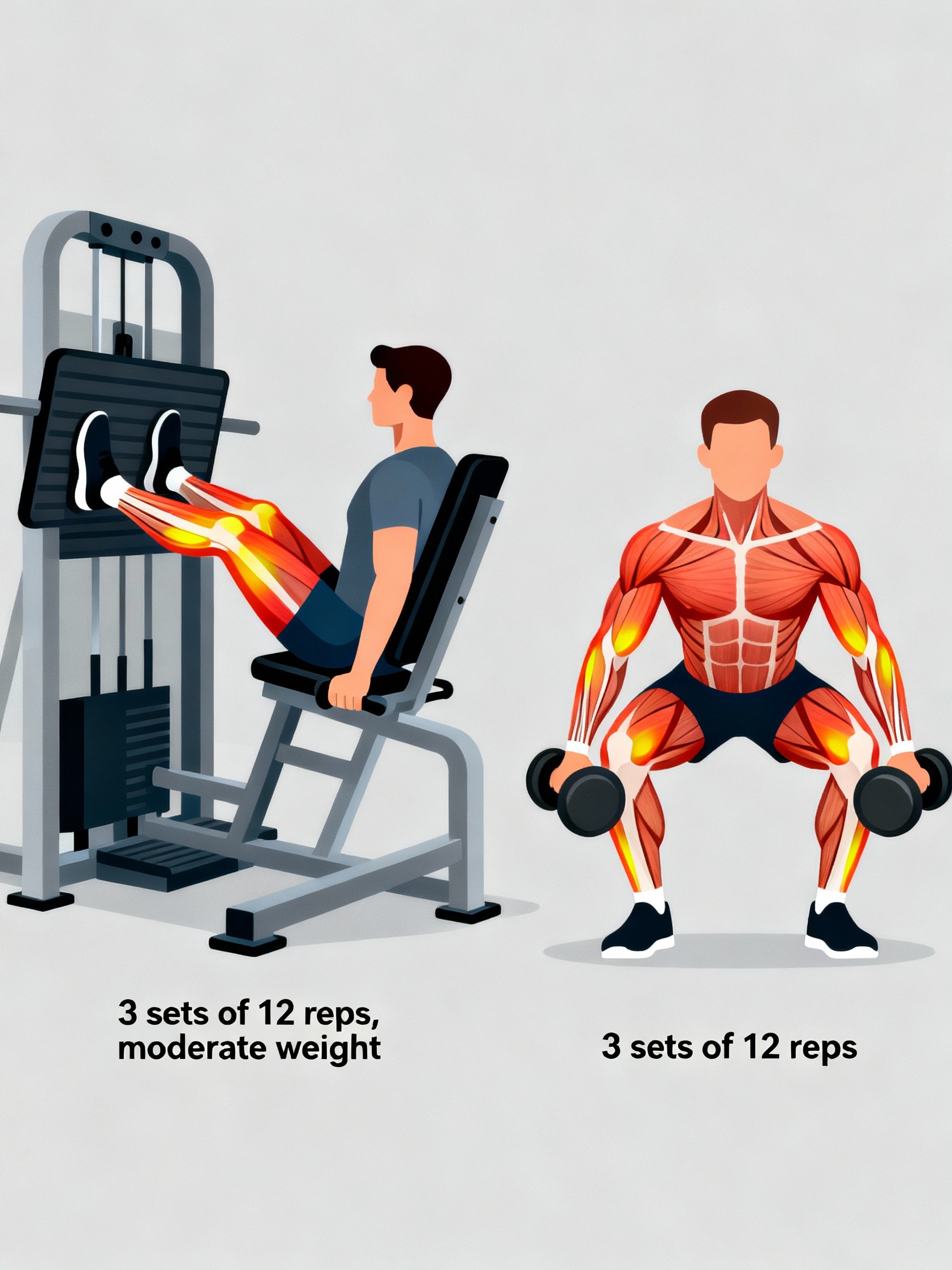 LEG PRESS (machine option) 3 sets of 12 reps with moderate weight